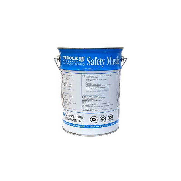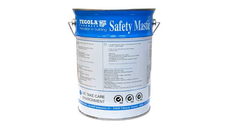 Битумно-полимерная мастика холодного применения для дополнительной фиксации лепестков черепицы и герметизации примыканий, ендов и нахлестов гидроизоляционных мембран (подкладочных ковров). Мастика битумная СЕЙФИТИ МАСТИК представляет однородную клеевую массу, состоящую из битума, бутадиен-стирольного термопласта, наполнителя, растворителя и технологических добавок. Обеспечивает надежное соединение битумной черепицы к различным основаниям: кирпичной кладке, бетону, металлу, дереву и др. По составу мастика СЕЙФИТИ МАСТИК полностью соответствует составу гибкой битумной черепицы и не вызывает деформации.