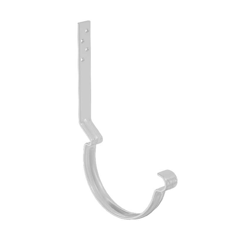 Крюк крепления желоба — цельнометаллический, изготовлен из стали толщиной 4 мм. Обеспечивает силовую поддержку желоба и неизменность его геометрических параметров, создаёт уклон, необходимый для движения воды в заданном направлении. Благодаря ребрам жесткости обладает повышенной прочностью, выдерживает большие силовые нагрузки.-Задний замок выполнен со смещением, что позволяет обеспечить наличие вентиляционного зазора между желобом и лобовой доской -Увеличенное «монтажное плечо» крюка (160 мм – длинный крюк; 230 мм – удлиненный крюк) удобный монтаж на разные уклоны крыши-Дополнительное ребро жесткости,  увеличивающее прочность и надежность крюка-Особая марка стали повышенной прочности, цельнометаллическая полоса толщиной 4 мм с оцинковкой 275 г/м.кв.-Уникальность подтверждает фирменный штамп «лилия» расположенный в передней части.