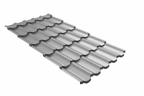 Металлочерепица Grand Line Kvinta plus 0,45 Полиэстер RAL 9006 Бело-алюминиевый | c 3D резом