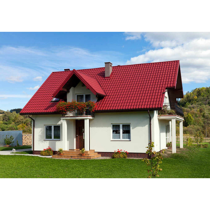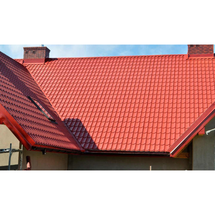 • Кровля защищена от механических воздействий, так как в основе металлочерепицы сталь толщиной 0.45 мм (с учётом металла, цинкового и полимерного слоя).