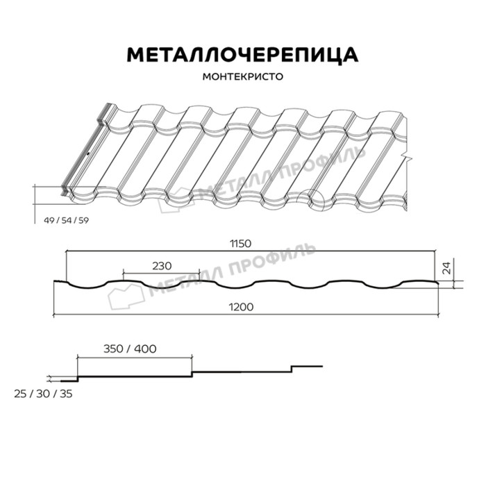 МОНТЕКРИСТО ― новый элегантный профиль металлочерепицы глубиной 49, 54 или 59 мм. Рассматриваемый кровельный материал будет долго украшать вашу кровлю. Стальная черепица МОНТЕКРИСТО эстетично смотрится на крыше вне зависимости от её площади: даже небольшие скатыприобретут необходимую выразительность. Мягкие волны профиля притягивают внимание прохожих. В процессе изготовления указанного кровельного материала мы применяем новые технологии, в том числе 3D-рез. Сталь обрабатывается на высокоточном оборудовании, по этой причине листы отлично стыкуются при установке. Элегантный и изысканный ― это профиль МОНТЕКРИСТО.