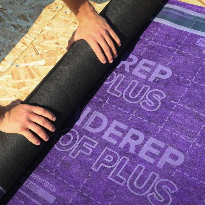 Сверхлегкий (всего 0,4 кг/м2) и прочный подкладочный ковер механической фиксации с основой из полиэфира для скатных кровель под финишное покрытие из гибкой битумной черепицы. Малый вес рулона и нескользящее покрытие из полипропилена (Spunbond) обеспечивает безопасность монтажа. Удобная разметка позволяет правильно расположить подкладочный ковер на основании, отмерить необходимую длину, а также верно ориентировать гонты при монтаже гибкой битумной черепицы.