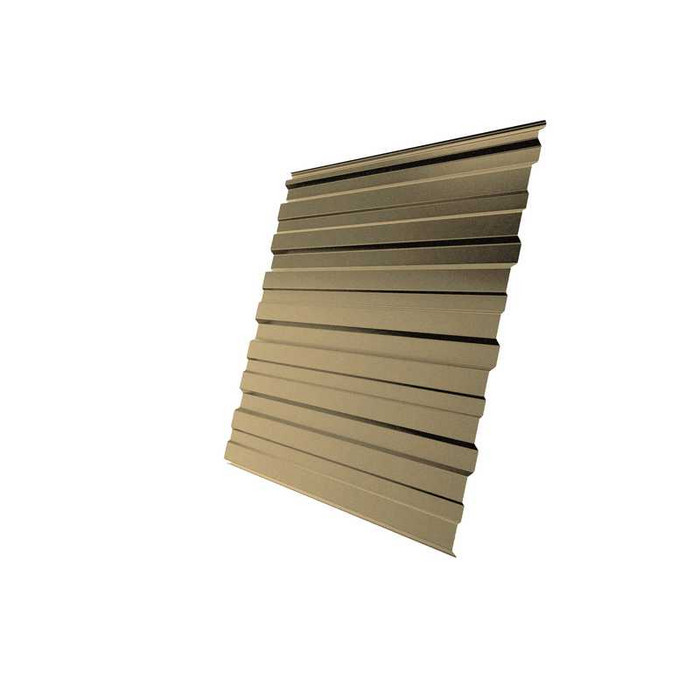 Данный материал имеет самую низкую высоту ступени по сравнению с другими видами кровельного профнастила. При своей не очень высокой прочности, материал является более гибким и податливым, смотрится более аккуратно, чем другие виды профнастила. Благодаря широкому выбору цветовой гаммы и небольшой высоте профиля этот материал будет органично смотреться на крыше любой сложности.